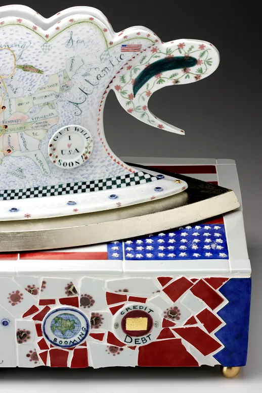 Bushwacked is a time capsule of the 8 year George Bush presidency and the first in a series with themes involving politics, government, economics and ecological issues. The broken vessel and shards are metaphors symbolizing the havoc left in his wake. USA: a good thing in need of repairs.